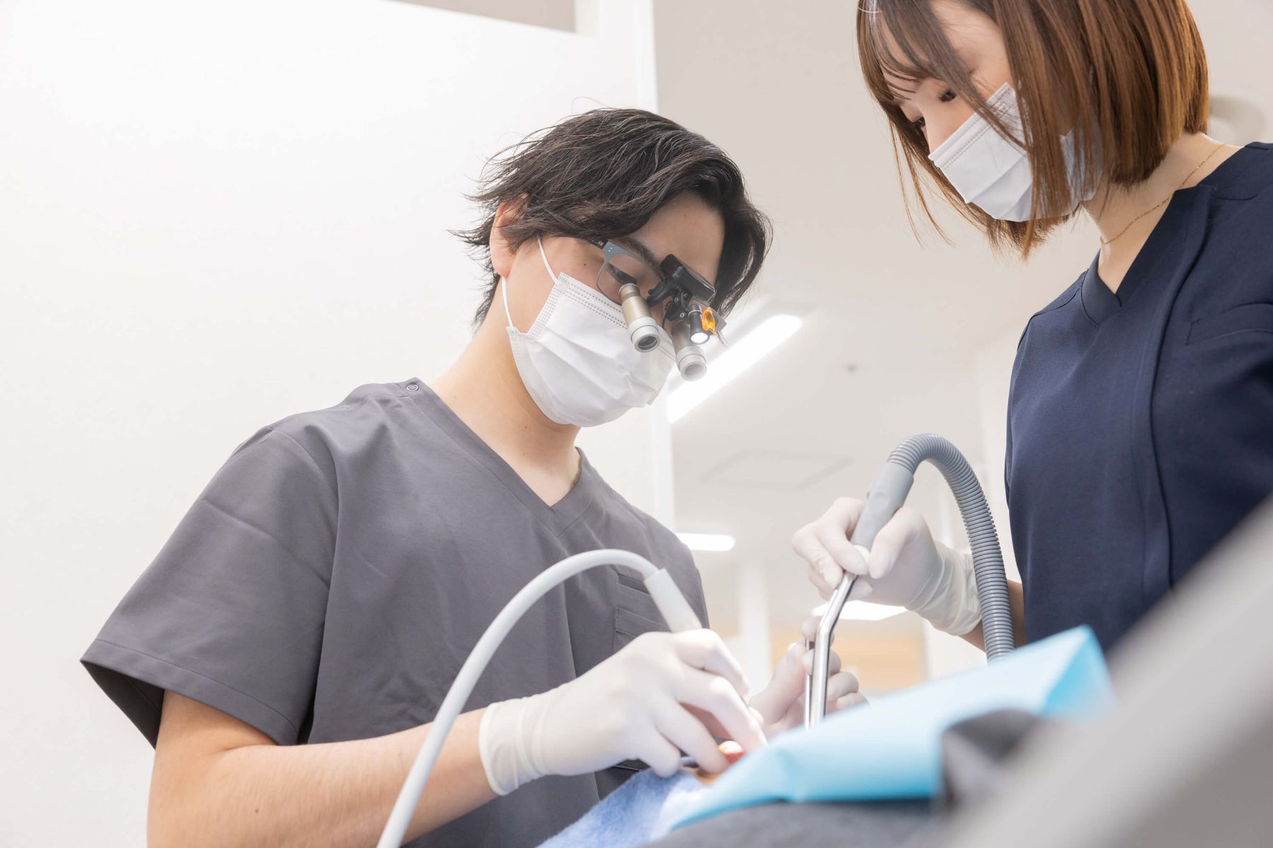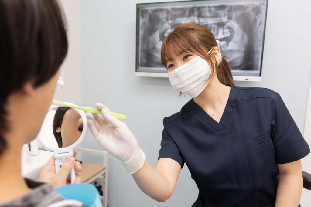 お口の中を確認し、必要な検査を受けていただきます。レントゲン写真やカメラを用いて撮影を行い、わかりやすいようにご説明いたします。