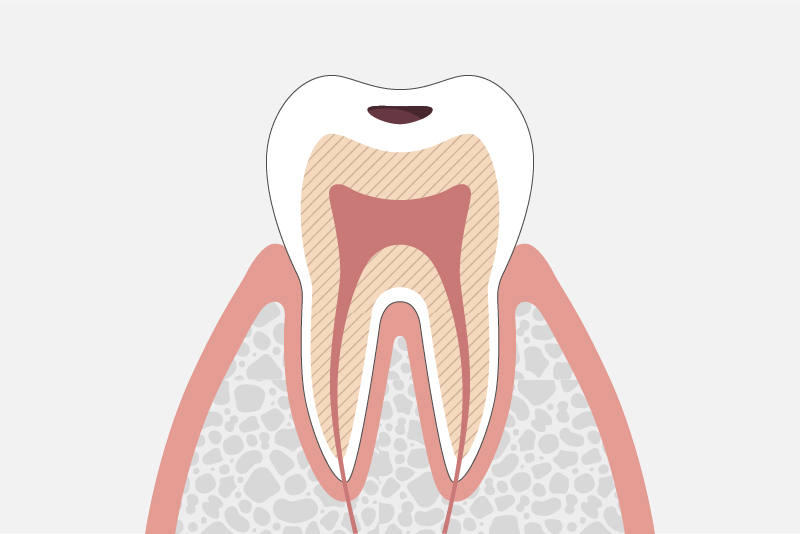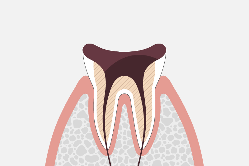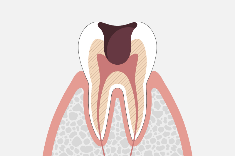 象牙質より内側の歯髄(神経)にまで虫歯が達した状態です。この段階では、歯髄に虫歯の細菌が進入し感染を起こすことで激しい痛みを伴う可能性があります。