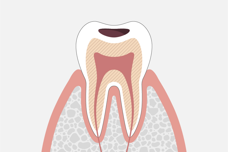 エナメル質より内側の象牙質まで虫歯が達した状態です。