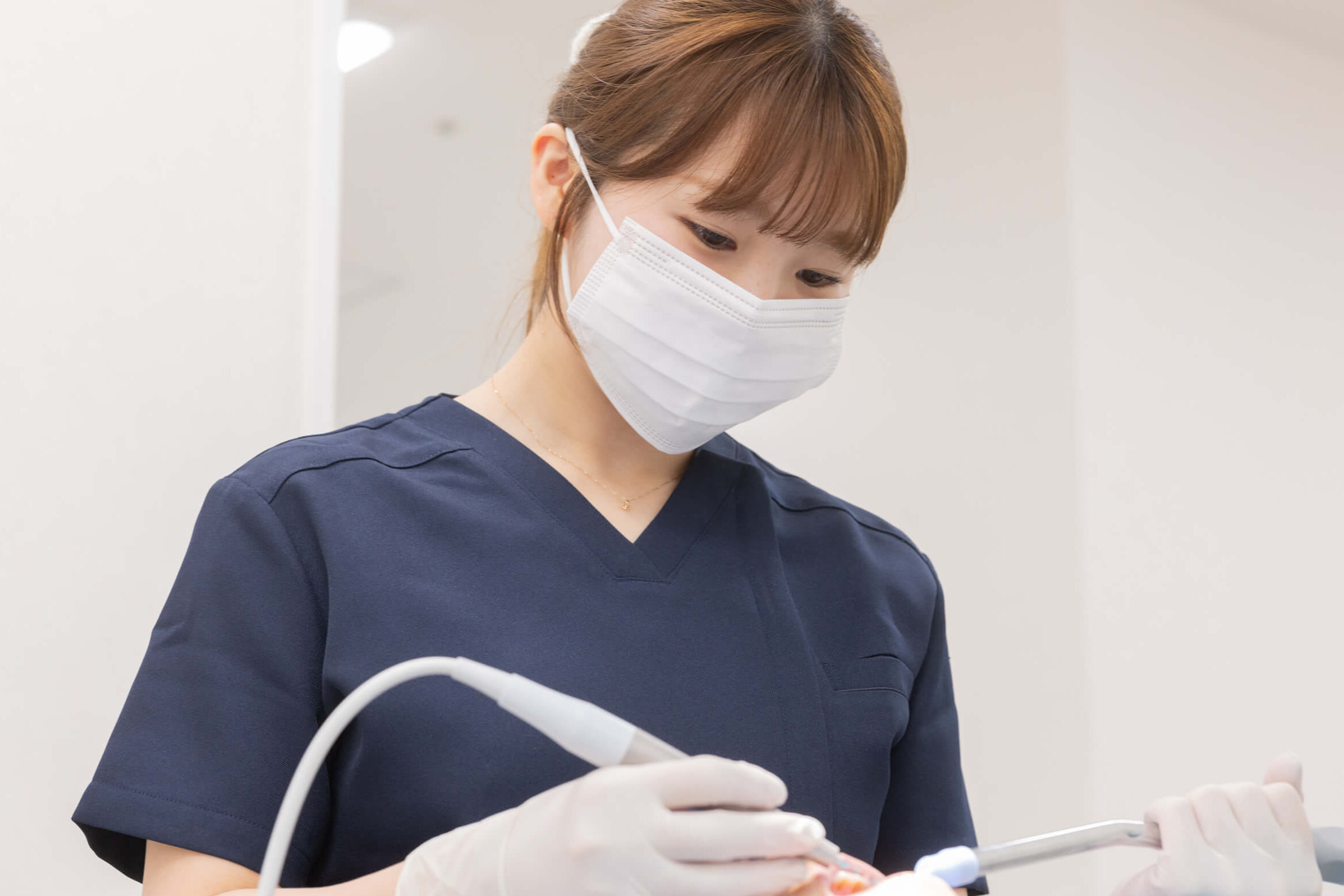 歯と歯肉の間に隠れている歯石(歯肉縁下歯石)は固く、目に見えないため部位ごとに分けて除去(SRP)するため何度か通院が必要となります。