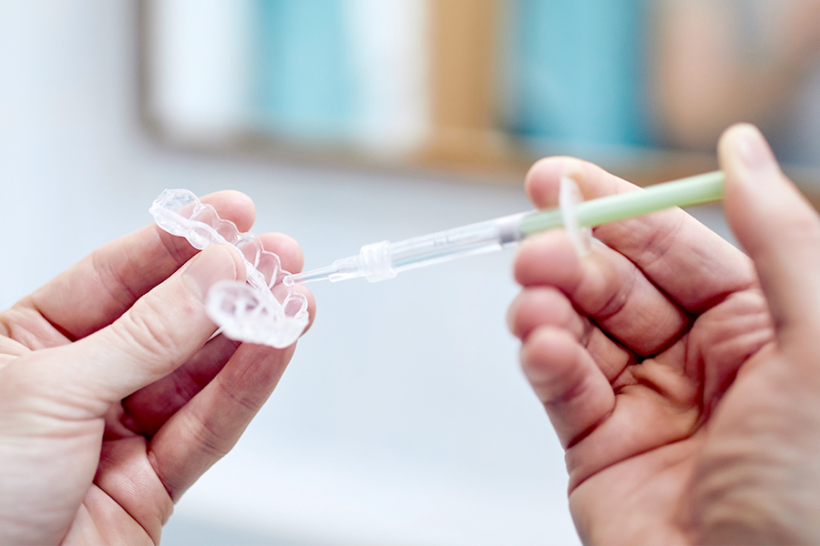 患者様専用のマウスピースを製作し、患者様自身がマウスピースの中にホワイトニングジェルを入れて、家で毎日一定時間装着して漂白する方法です。